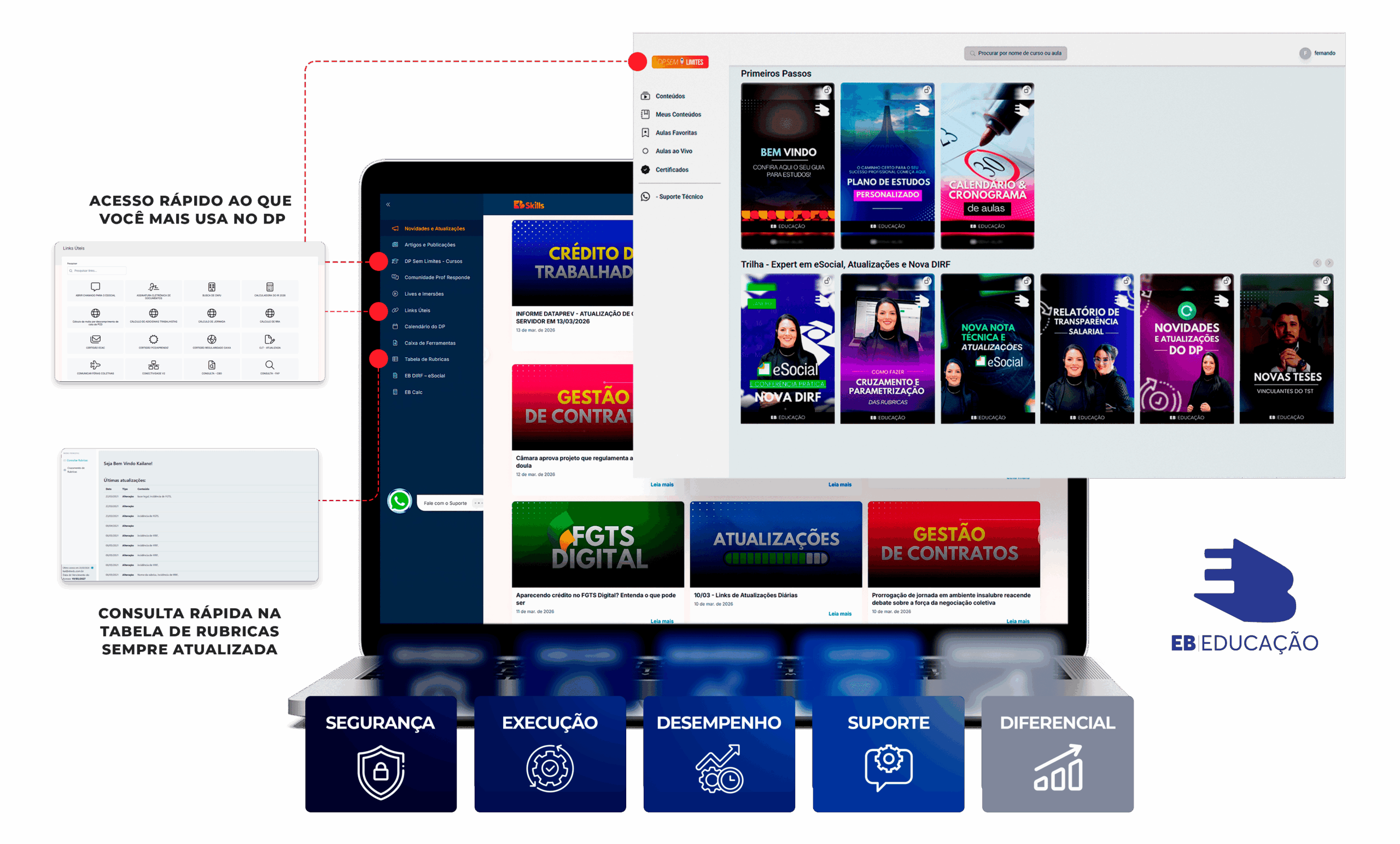 Tenha confiança à um ambiente que te mantém atualizado, orienta na prática e te ajuda a aplicar corretamente as rotinas do DP com mais confiança.